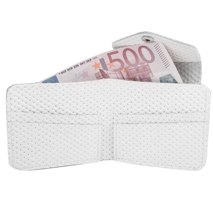 Этот кошелёк не только для денег, но и для хорошего настроения и ощущения приятной лёгкости в обращении с повседневно-необходимыми предметами гардероба. Модель торговой марки ETERNO привлекает простой конструкцией, малым размером, интересным дизайном. Широкий фигурный клапан с помощью механической кнопки фиксирует аксессуар в одно сложение. Фактурная поверхность изделия тактильно-приятна, натуральна шкіра красиво демонстрирует свой природный характер. Кошелёк-портмоне предназначен для купюр и нескольких карточек, он поместится даже в небольшой сумочке. Белый цвет кожи усабовает свое очарование благодаря фурнитуре под серебро. В интернет-магазине "ЕМИЛИ" купить женский кожаный кошелёк из данного модельного ряда Вы можете по экономной цене.