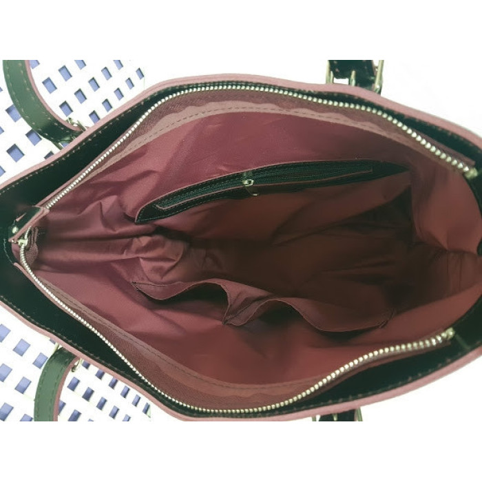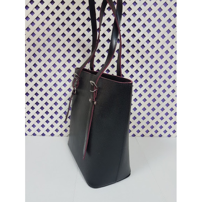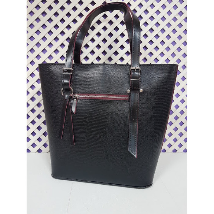 Ділова жіноча сумочка "Ліана" виконана з натуральної високоякісної шкіри. Сумка на підкладці, всередині є кишеня на блискавці і дві відкритих кишені, а також є кишеня на блискавці на внутрішній стороні сумочки. Є дві плечові ручки. Закривається сумка на блискавку.