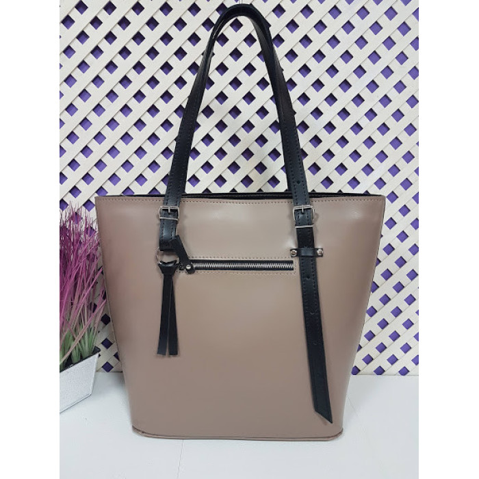 Ділова жіноча сумочка "Ліана" виконана з натуральної високоякісної шкіри. Сумка на підкладці, всередині є кишеня на блискавці і дві відкритих кишені, а також є кишеня на блискавці на внутрішній стороні сумочки. Є дві плечові ручки. Закривається сумка на блискавку.
