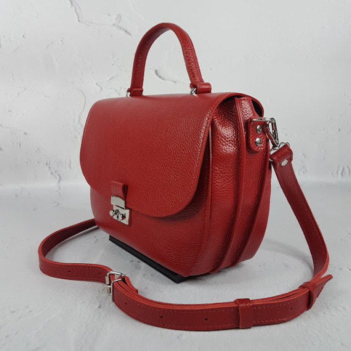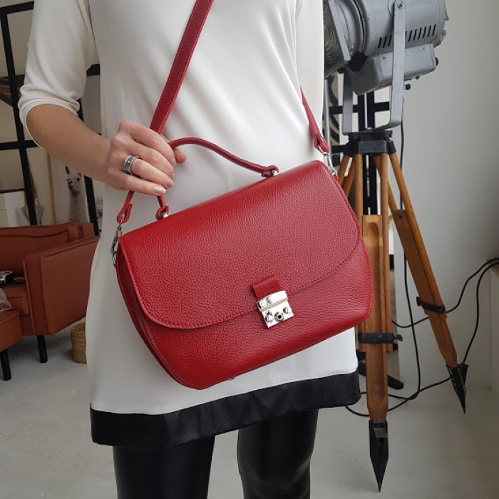 Стильна сумочка "Місяць" виготовлена з натуральної шкіри. Плечовий ремінь подвійний, регулюється. На зворотному боці є кишеня на блискавці. Усередині сумочка на підкладці з кишенею на блискавці і з двома відкритими кишенями.