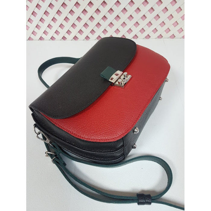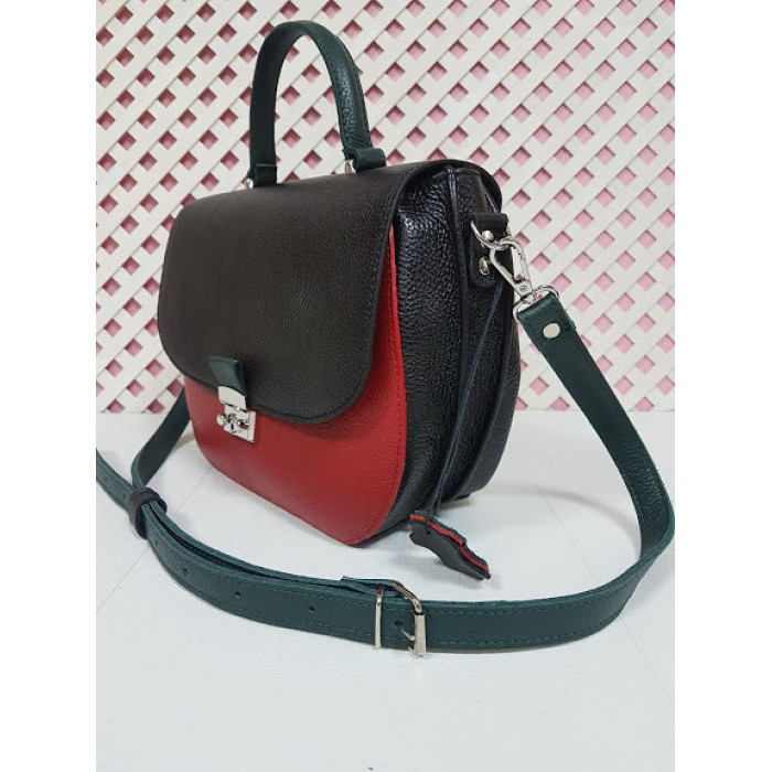 Стильна сумочка "Місяць" виготовлена з натуральної шкіри. Плечовий ремінь подвійний, регулюється. На зворотному боці є кишеня на блискавці. Усередині сумочка на підкладці з кишенею на блискавці і з двома відкритими кишенями.