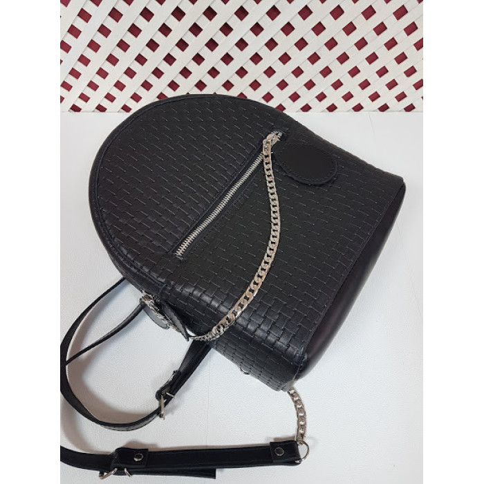 Неймовірно зручний рюкзак з якісної натуральної шкіри. Відмінно тримає форму і дуже місткий. Ланцюжок надає рюкзачку оригінальність. Має одне велике відділення, всередині є відкрита кишеня.