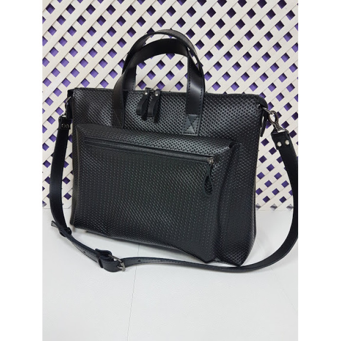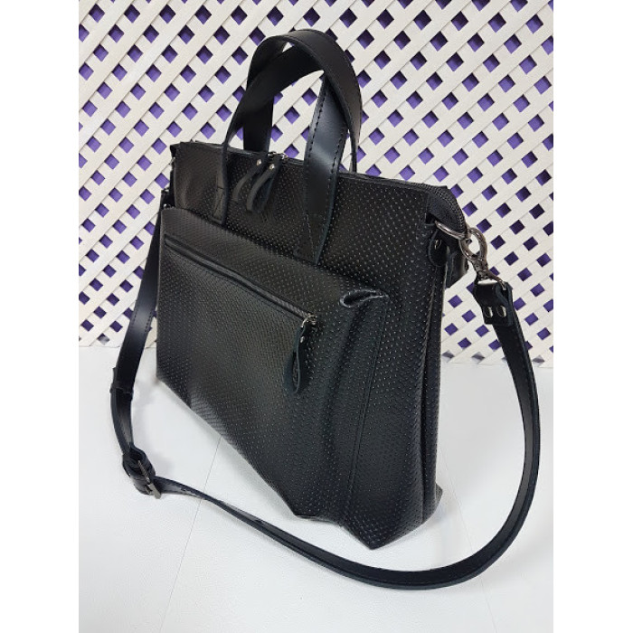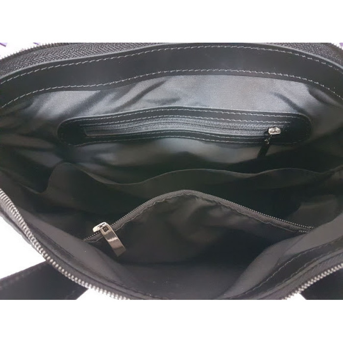 Сумка "Торонто" виконана з якісної натуральної шкіри, дуже містка і зручна. Всередині є два великих відділення і три кишені на блискавки. Сумка закривається на блискавку, має довгий ремінь на карабіни і дві ручки, які регулюються.