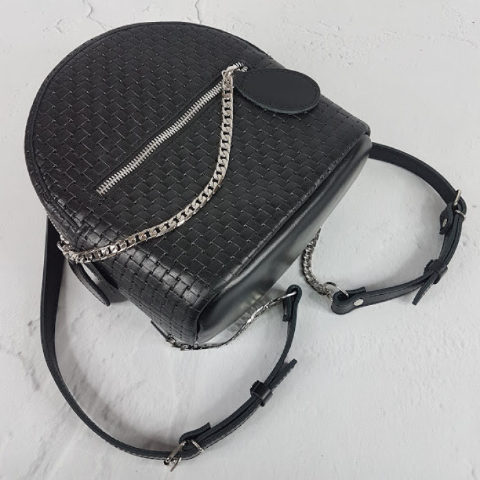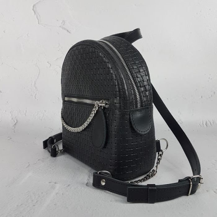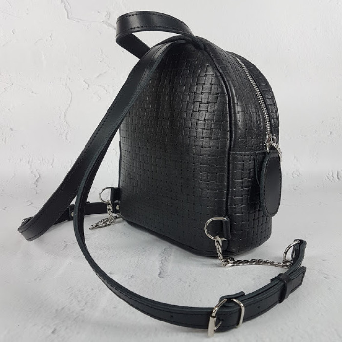 Неймовірно зручний рюкзак з якісної натуральної шкіри. Відмінно тримає форму і дуже місткий. Ланцюжок надає рюкзачку оригінальність. Має одне велике відділення, всередині на підкладці.