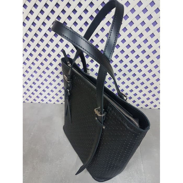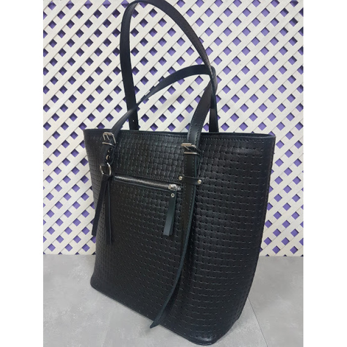 Ділова жіноча сумочка "Ліана" виконана з натуральної високоякісної шкіри. Сумка на підкладці, всередині є кишеня на блискавці і дві відкритих кишені, а також є кишеня на блискавці на внутрішній стороні сумочки. Є дві плечові ручки. Закривається сумка на блискавку.