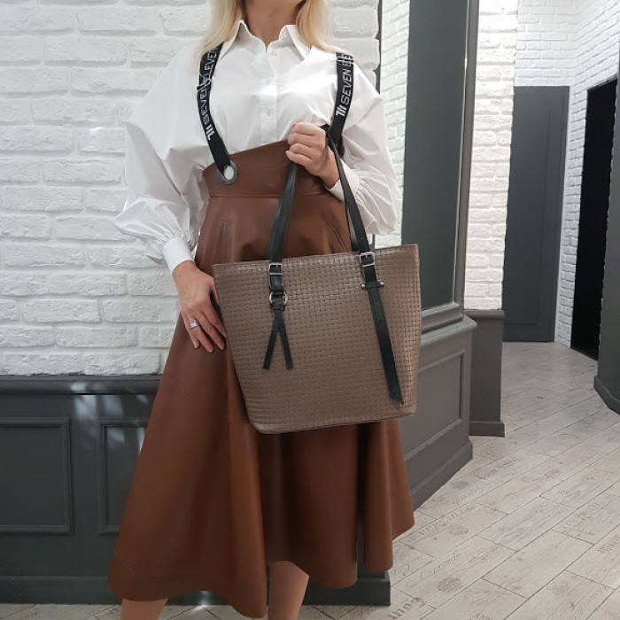 Ділова жіноча сумочка "Ліана" виконана з натуральної високоякісної шкіри. Сумка на підкладці, всередині є кишеня на блискавці і дві відкритих кишені, а також є кишеня на блискавці на внутрішній стороні сумочки. Є дві плечові ручки. Закривається сумка на блискавку.