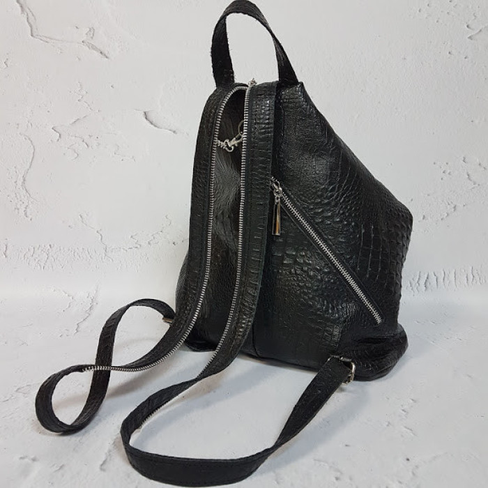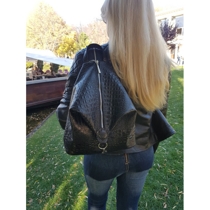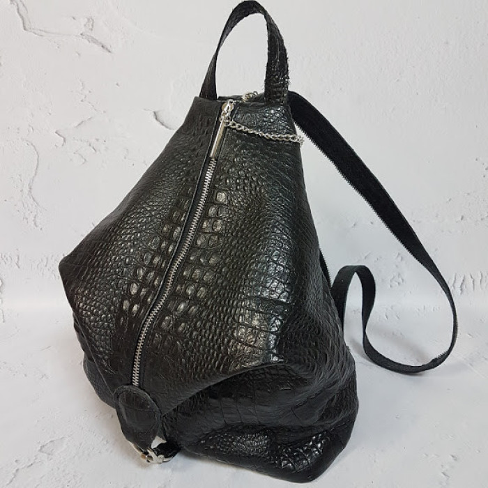 Місткий, модний і неймовірно зручний рюкзак! Має одне велике відділення і дві внутрішні кишені, одна з них на блискавці. Плечові ремені з можливістю регулювання довжини, з двох ременів за допомогою блискавки, можна зробити один. При закритій блискавки, собачку можна прикріпити до прихованого кільцю ланцюжком, що забезпечує "підвищену безпеку" Ваших речей. Рюкзак всередині на підкладці.