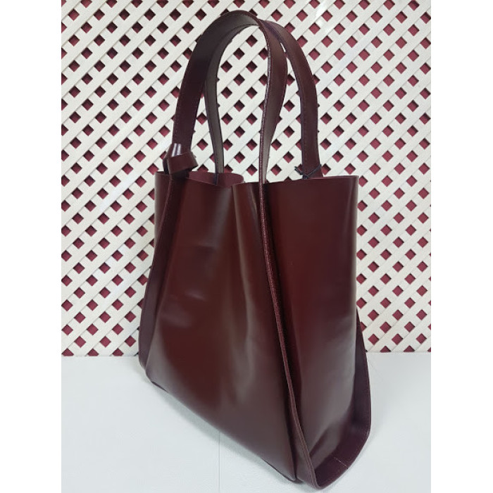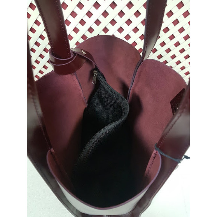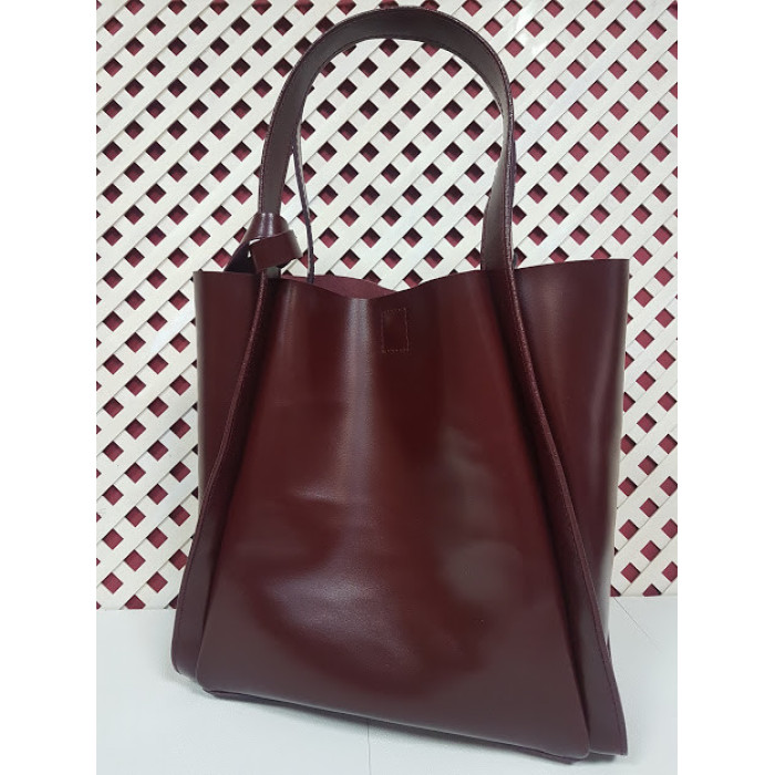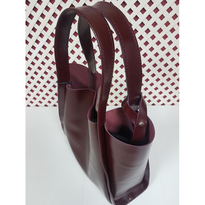 Містка сумка з натуральної шкіри, всередині спеціальне відділення - футляр, яке кріпиться до ручки сумки за допомогою шкіряного ремінця. Можливо виготовити сумку на блискавки і на підкладці. Ручки сумки можемо подовжити за Вашим бажанням. Застібається на прихований магніт. Розмір сумки: 27 * 32 * 11