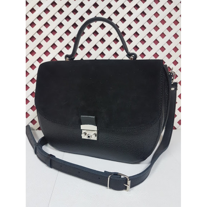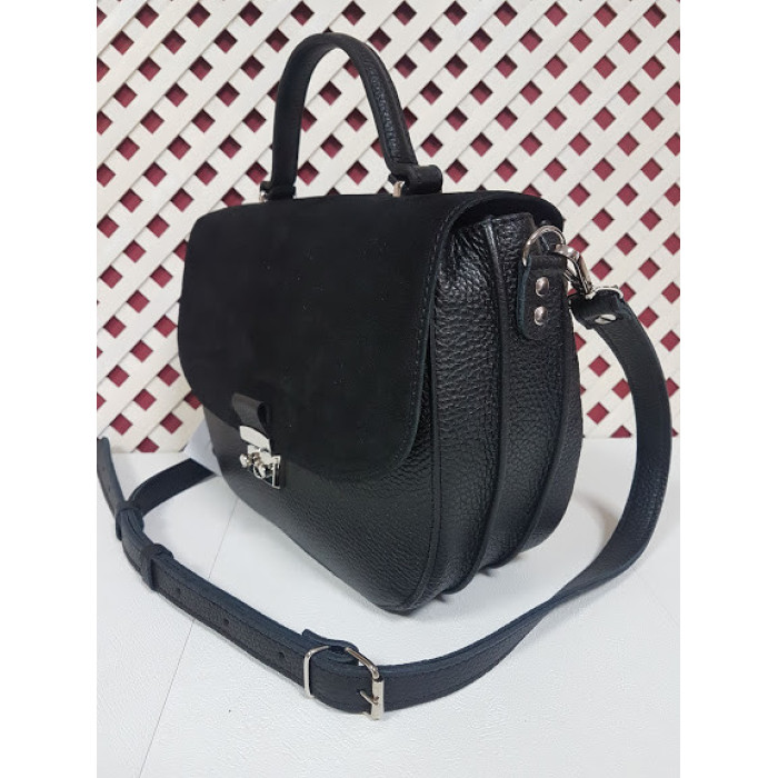 Сумка жіноча "Місяць" натуральна шкіра чорна, клапан із замші