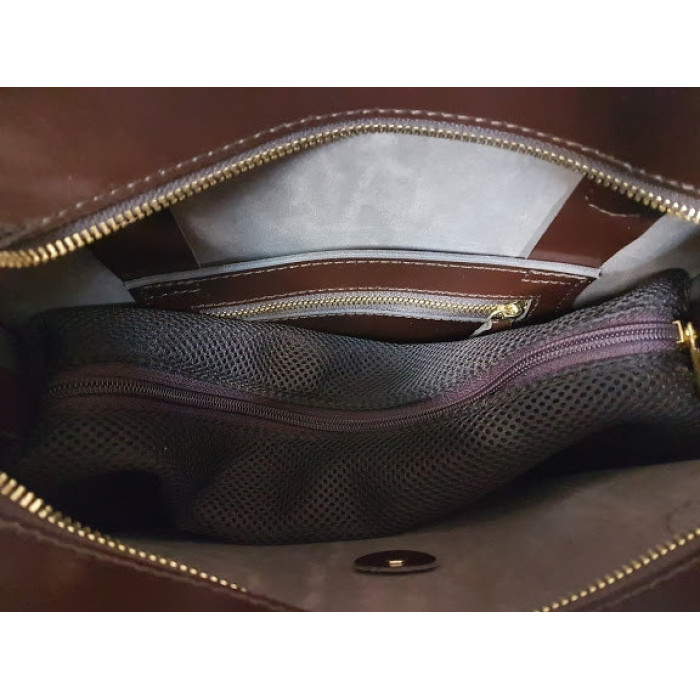 Сувора сумочка "РІЦА" з натуральної високоякісної шкіри, виглядає дуже стильно! Сумка на блискавці. Всередині знаходиться відділення-футляр, яке кріпиться до сумки. Ручки сумки можемо подовжити / вкоротити за Вашим бажанням. На зовнішній стороні сумки перебуває велика кишеня, який закривається на кнопку.