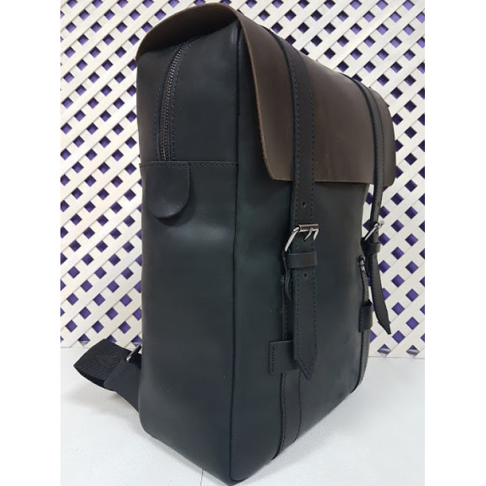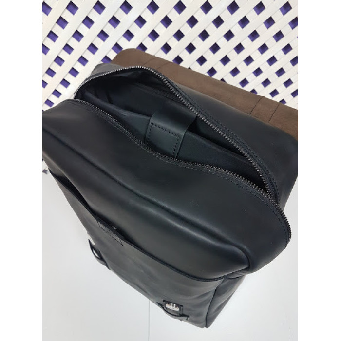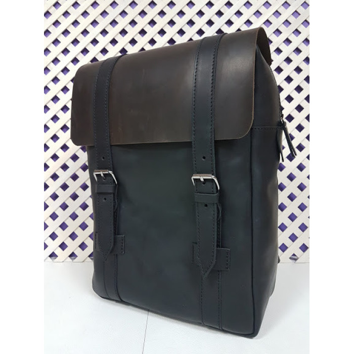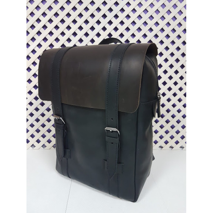 Неймовірно зручний рюкзак з якісної натуральної шкіри. Він дуже місткий і з великою кількістю відділень. Спинка і дно рюкзака ущільнені спеціальним ортопедичним матеріалом. Усередині рюкзака спеціальне відділення для ноутбука. Рюкзак закривається на магніти або на пряжки за побажанням. Спереду кишеня на магніті, а зі зворотного боку кишеня на блискавки. Має два плечових тканинних ременя, які регулюються. Також є коротка ручка.