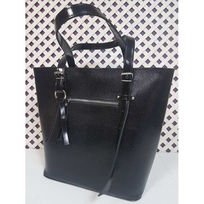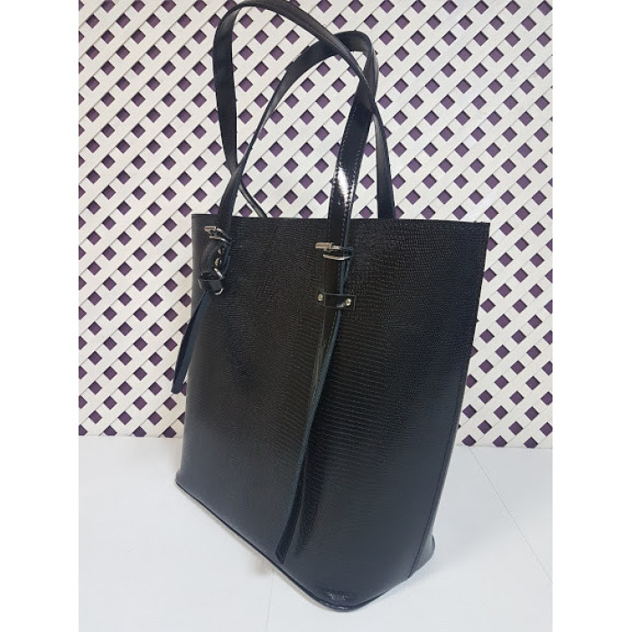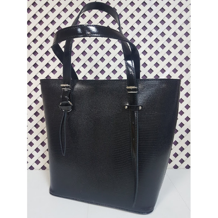 Сумка жіноча "Ліана" натуральна шкіра, чорна глянсова під рептилію