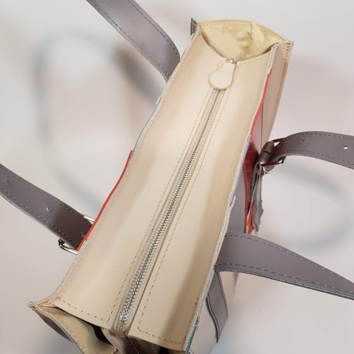 Дуже стильна і зручна модель жіночої сумки "Страйп" виготовлена з натуральної шкіри. Сумка без підкладки, закривається на блискавку, всередині є кишеня на блискавці. Довжина ручок регулюється, максимум на 22см, за рахунок чого можна носити як на плечі, так і в руці.