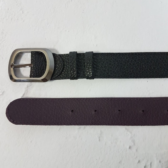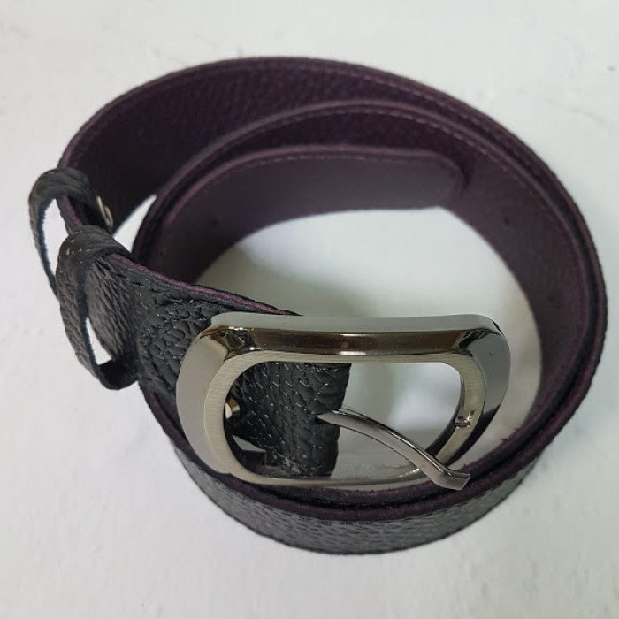 Двосторонній ремінь виготовлений з натуральної шкіри. Оригінальний дизайн буде стильно виглядати з будь-якими брюками або джинсами. Можливо виготовлення пояса в будь-яких кольорах з нашої палітри. Кольори: чорний, баклажан (двосторонній) металева пряжка Розміри: Довжина 110см; ширина 4 см