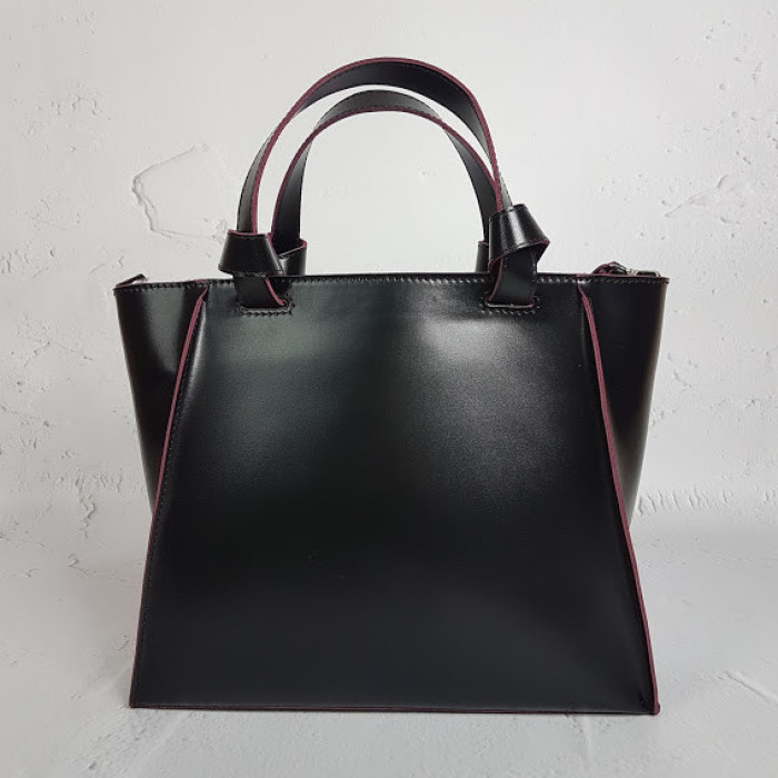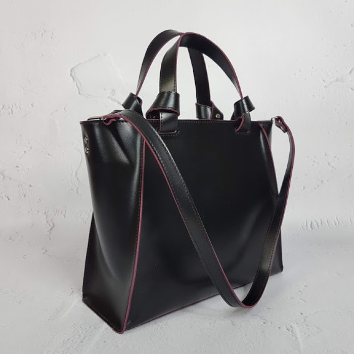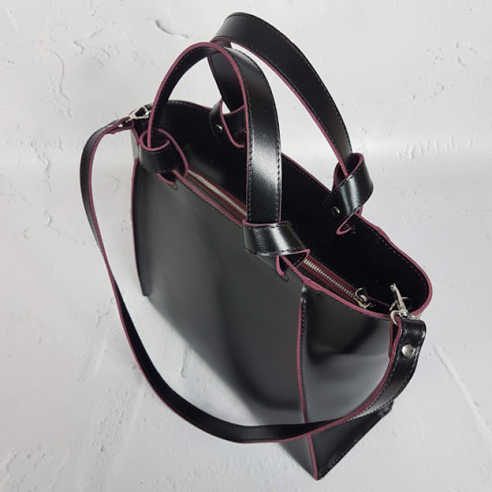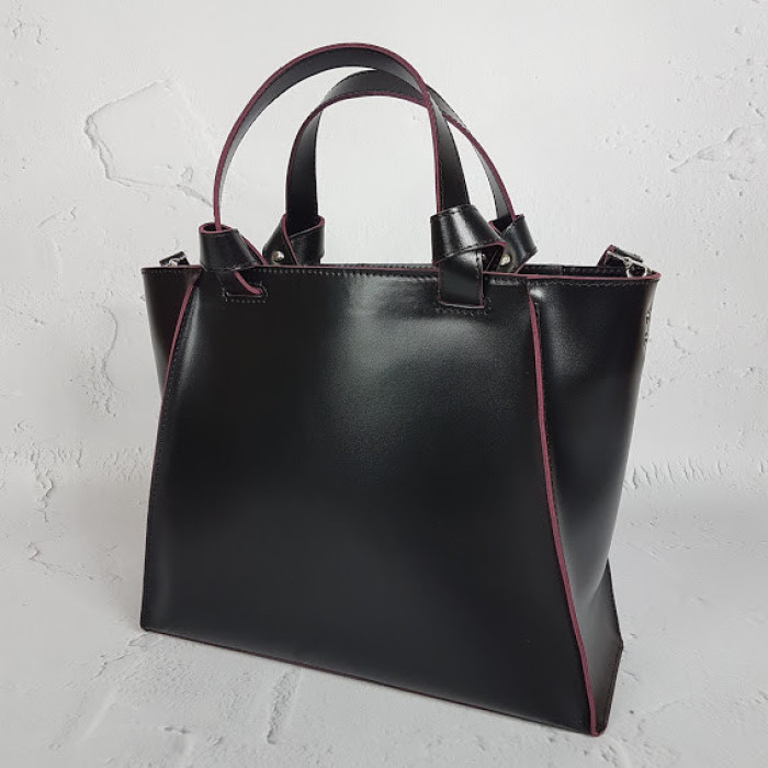 Сумка жіноча "ПРАГМА" виготовлена з якісної натуральної шкіри. Сумочка з оригінальними ручками. Всередині є кишеня на блискавці. Плечовий ремінь кріпиться на карабіни.