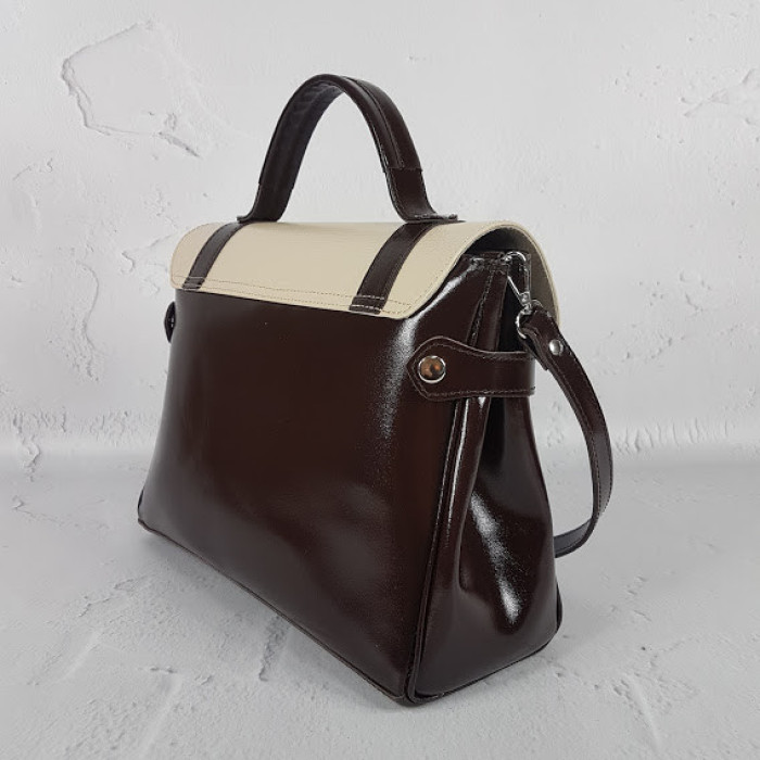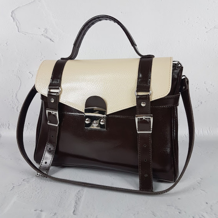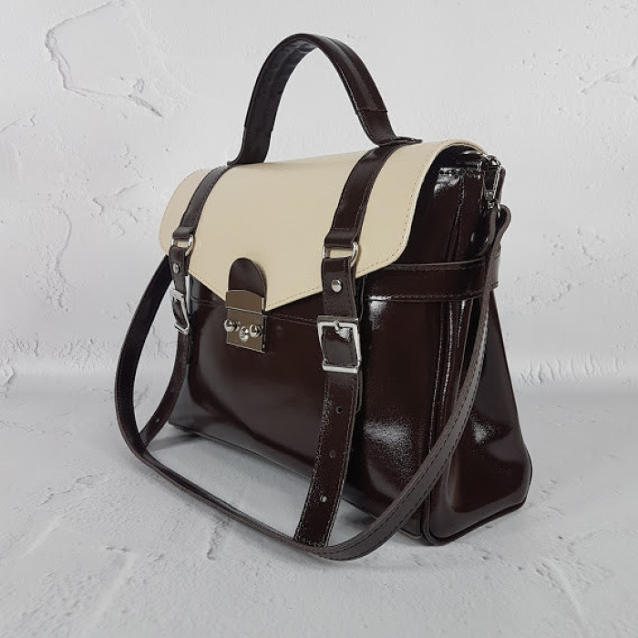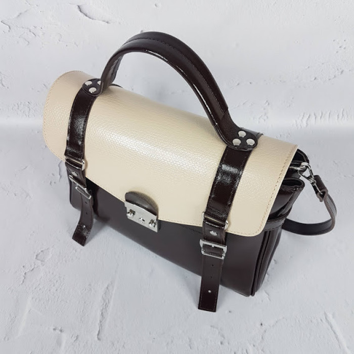 Стильна сумка-саквояж "Вінтаж" виготовлена з натуральної шкіри. Закривається на замок з клямкою і на два хлястика на магнітах. Усередині є одне основне відділення і кишеня на блискавці, плечовий ремінь на карабіни.