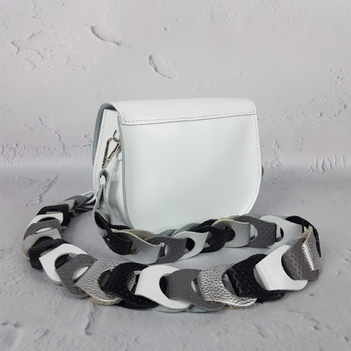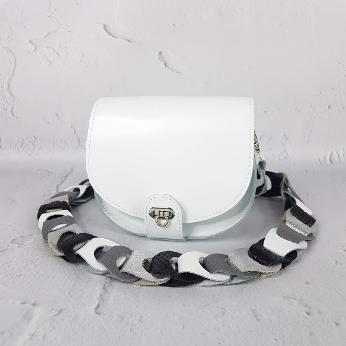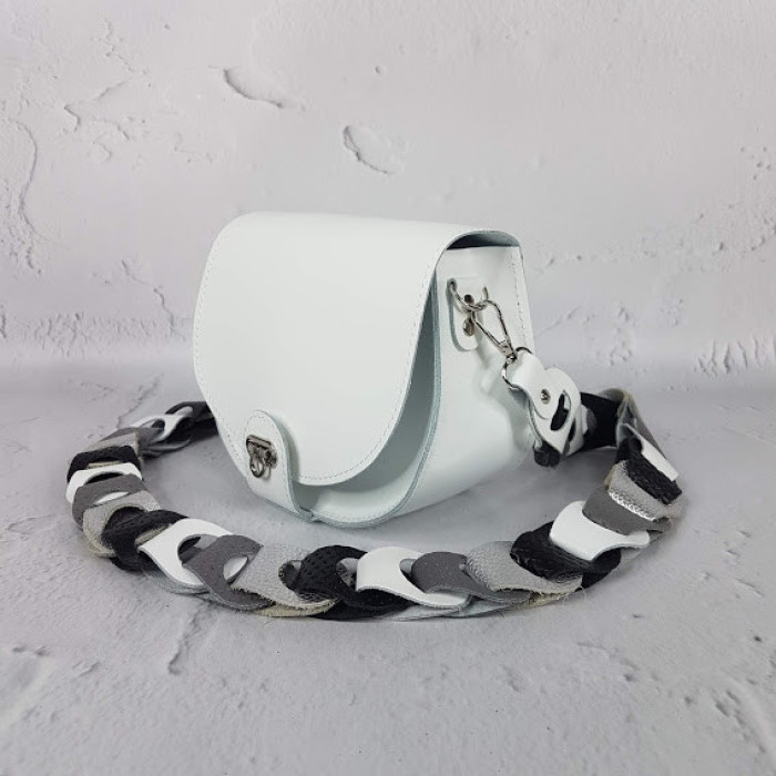 Маленька стильна сумочка ніколи не буде зайвою! Сумка без підкладки, закривається на замок-магніт. Плечовий ремінь виготовлений з дуже оригінального плетіння.