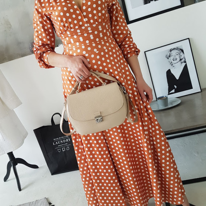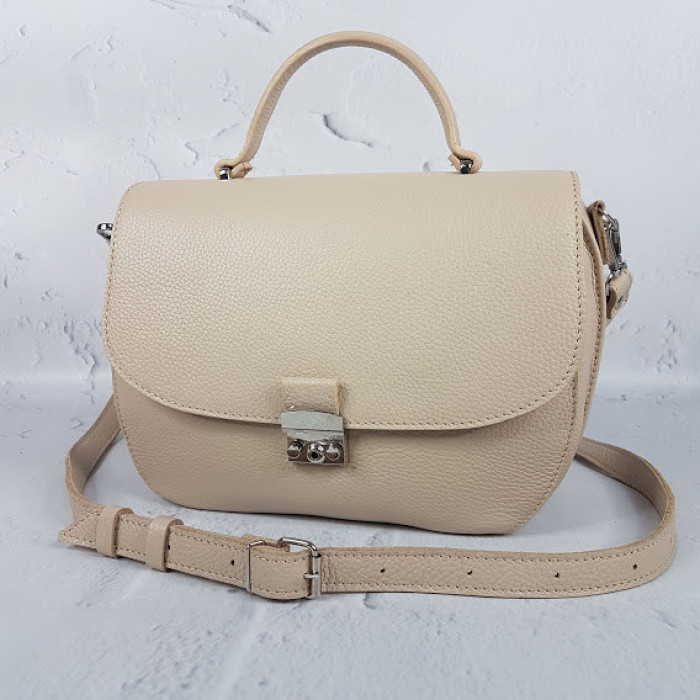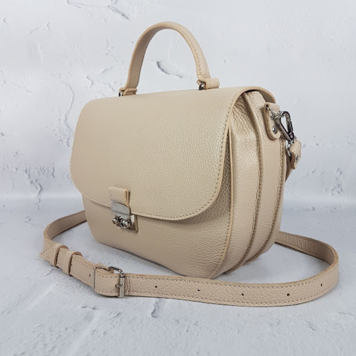 Стильна сумочка "Місяць" виготовлена з натуральної шкіри. Плечовий ремінь подвійний, регулюється. На зворотному боці є кишеня на блискавці. Усередині сумочка на підкладці з кишенею на блискавці і з двома відкритими кишенями.