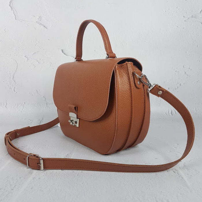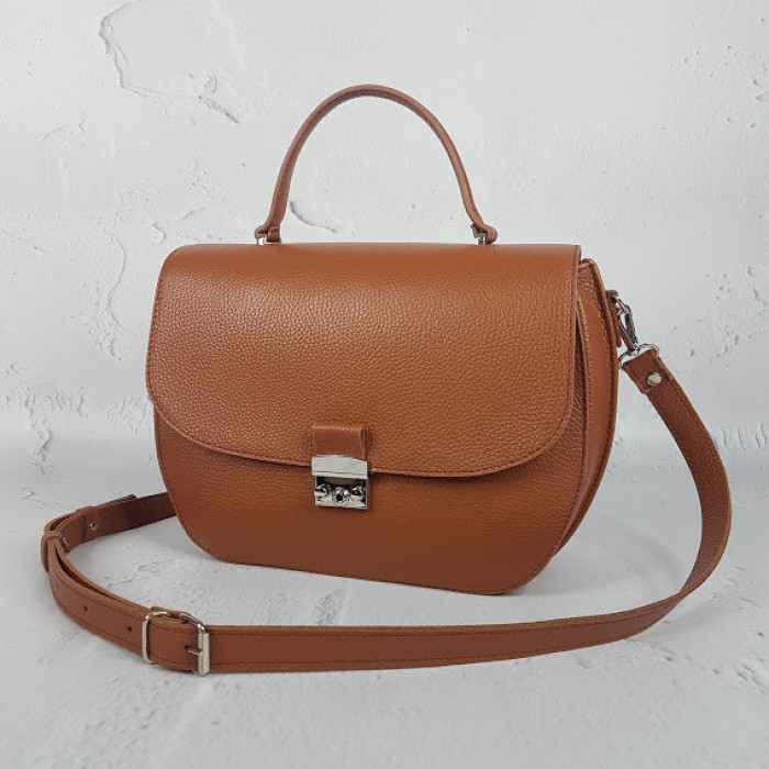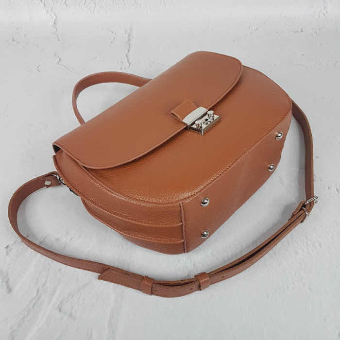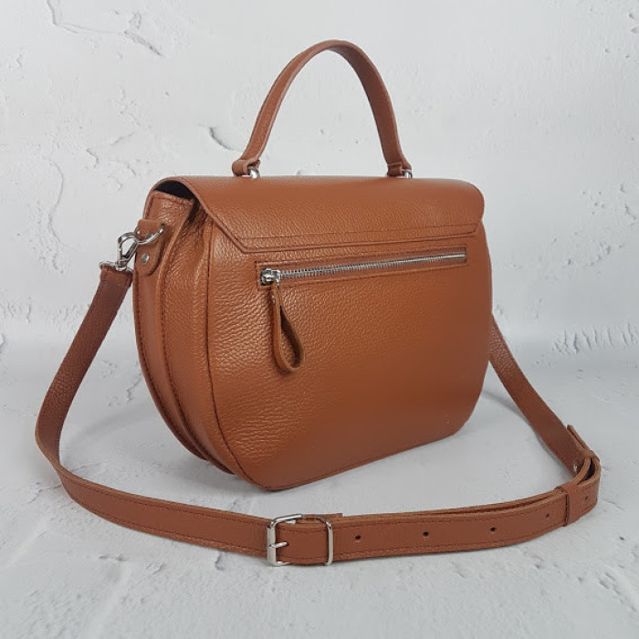 Стильна сумочка "Місяць" виготовлена з натуральної шкіри. Плечовий ремінь подвійний, регулюється. На зворотному боці є кишеня на блискавці. Усередині сумочка на підкладці з кишенею на блискавці і з двома відкритими кишенями.