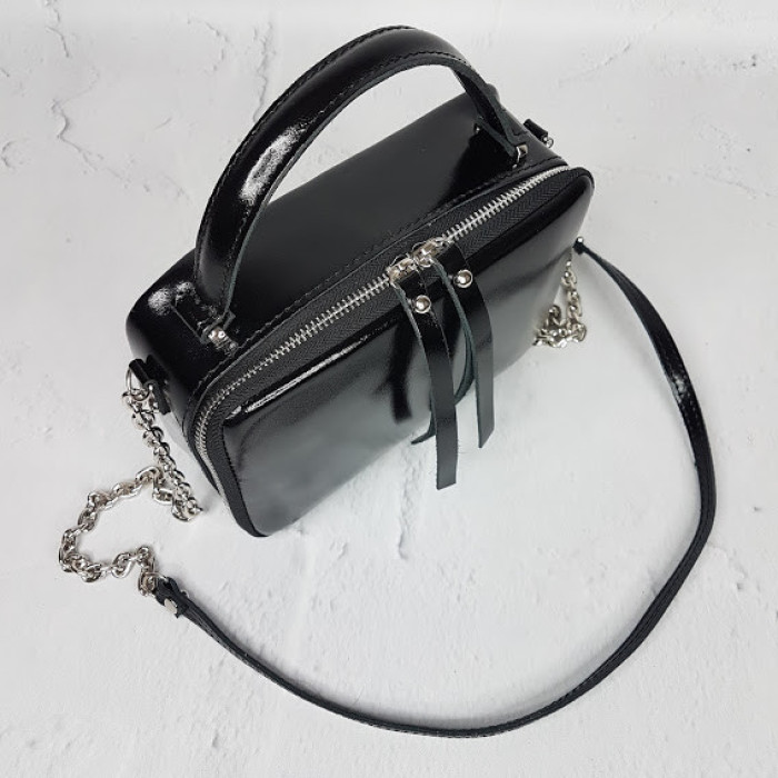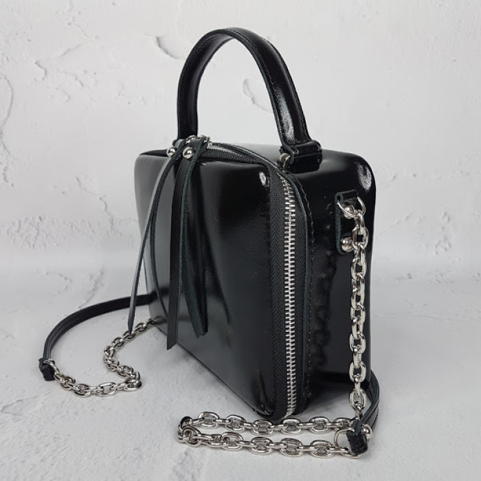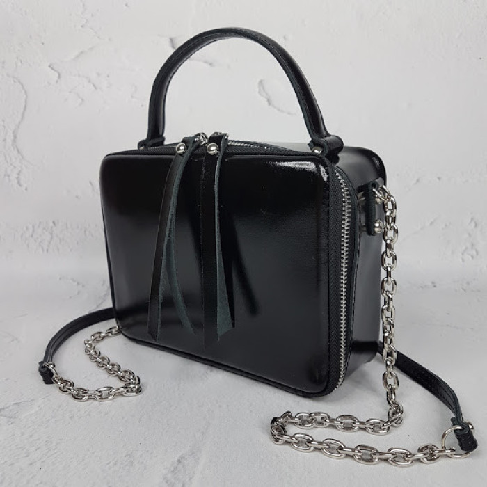 Модель сумочки з натуральної шкіри "КВАДРО" чудово тримає форму та помістить у себе все необхідне, що треба взяти із собою! Має невелику внутрішню кишеньку 14*10. Ремінь із ланцюжка зі шкіряною вставкою для плеча.