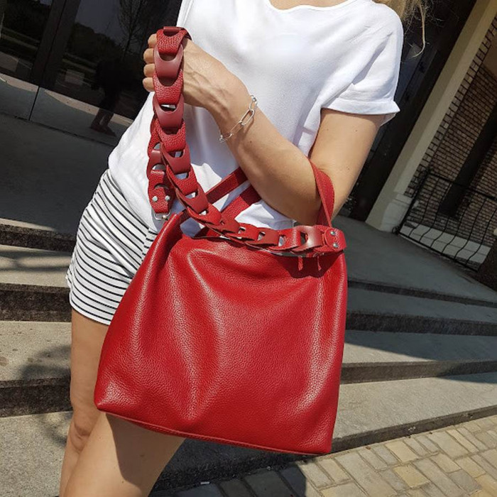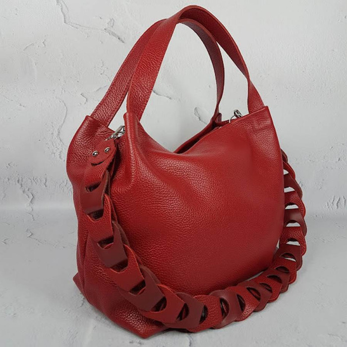 Містка і зручна сумочка-мішечок,стане невід'ємною частиною гардероба будь-якої модниці. Цю сумку можна носити як на плечі, так і в руці. Сумка на підкладці, всередині є два відділення, а також кишеня на блискавці. Є зовнішнія кишеня на блискавці. Плечовий ремінь регулюється.