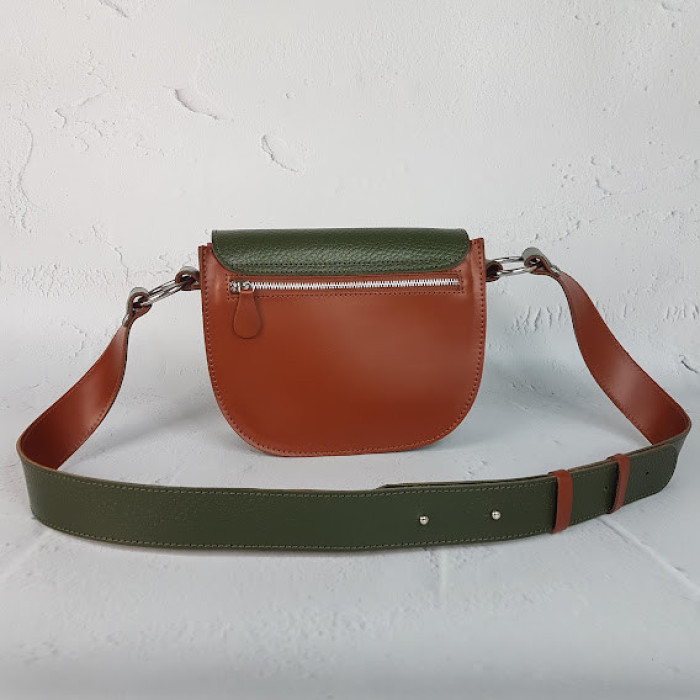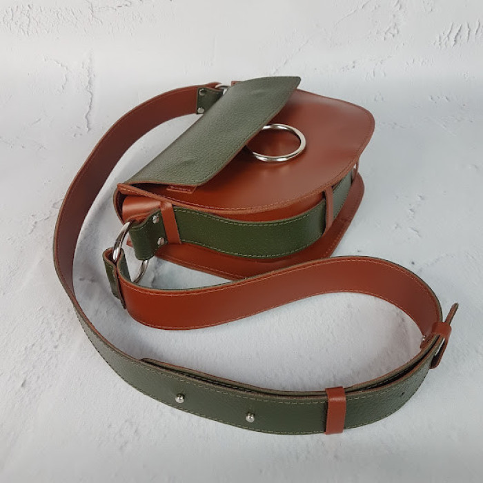 Оригінальна сумочка "Рута" не залишить байдужою її володарку! Широкий ремінь проходить через усю сумочку та надає їй особливої родзинки. Повністю виготовлена з натуральної шкіри, закривається на змійку і на два магніти. Є кишеня на блискавці на задній стінці сумки та відкрита кишеня всередині сумочки. Плечовий ремінь 130 см, можливо регулювати довжину.