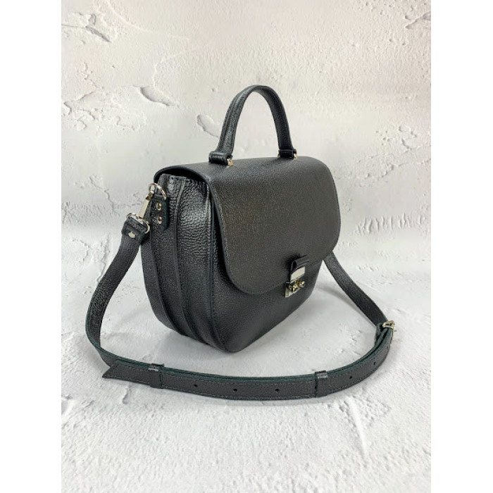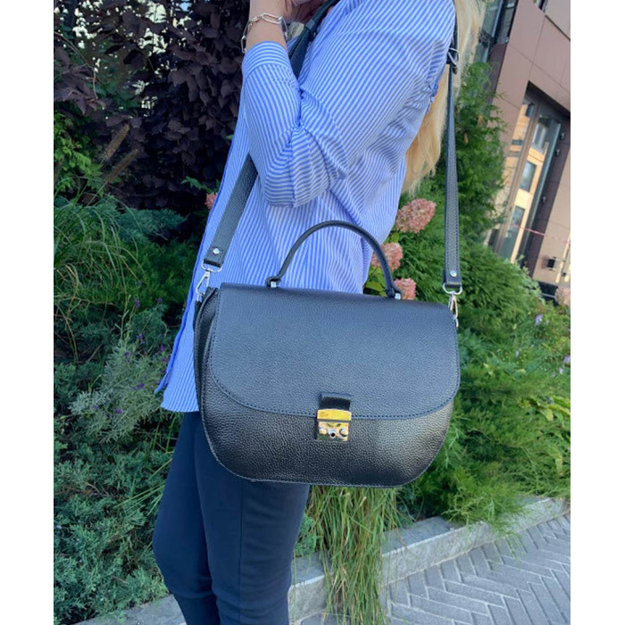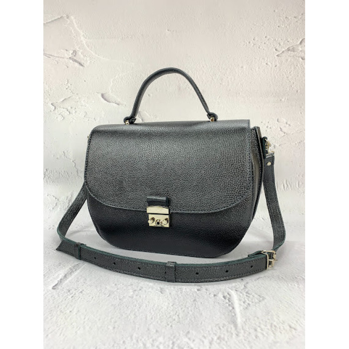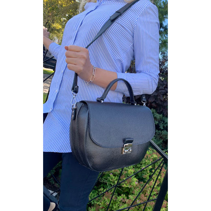 Стильна сумочка "Луна" виготовлена з натуральної шкіри. Плечовий ремінь подвійний, регулюється. На зворотному боці сумки є кишеня на блискавці. Всередині сумочка на підкладці з кишенею на блискавці і з двома відкритими кишенями.