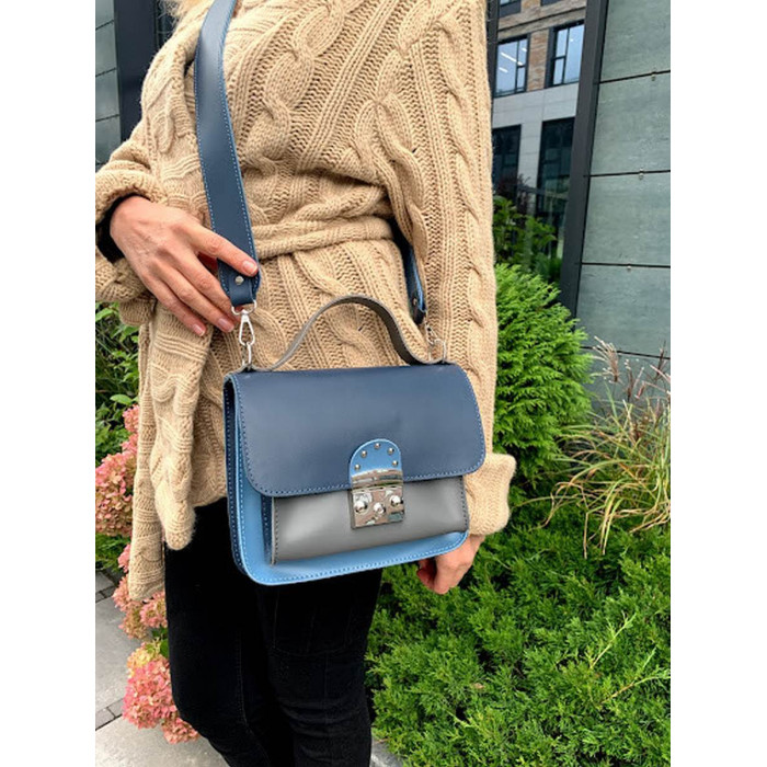 Сумочка закривається на замок-защечку, має два відділення і таємну внутрішню кишеню. Мається коротка ручка і широкий плечевий ремінь на карабінах з регулюванням довжини.