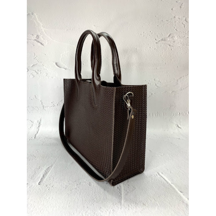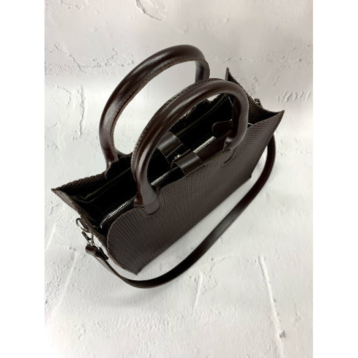 Елегантна і витончена класична сумка "СОЛО", виконана з натуральної шкіри найвищої якості. Сумочка на підкладці, всередині є глибока відкрита кишеня. Сумка закривається на блискавку. Є дві короткі ручки і один довгий плечовий ремінь, який кріпиться за допомогою карабінів.