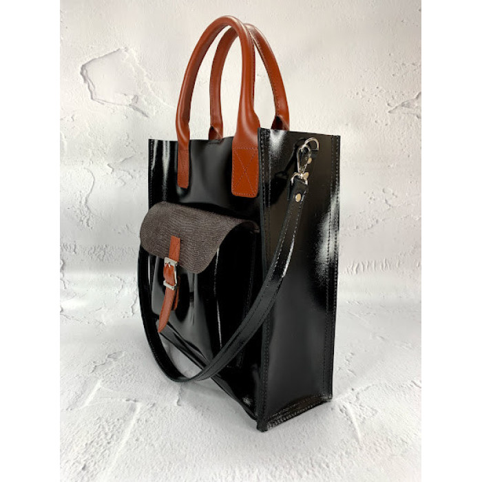 Дуже стильна та зручна модель жіночої сумки "ГАРДА" виготовлена з натуральної шкіри. Сумка на підкладці, закривається на блискавку і на магніт. Усередині є дві кишені: на блискавці та відкрита, зовні кишеня, яка закривається на ремінець на магніті.
