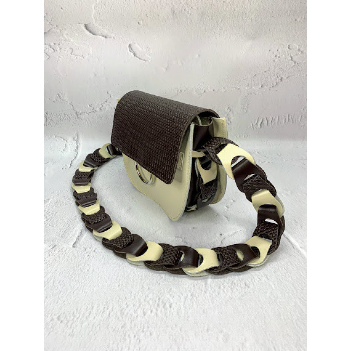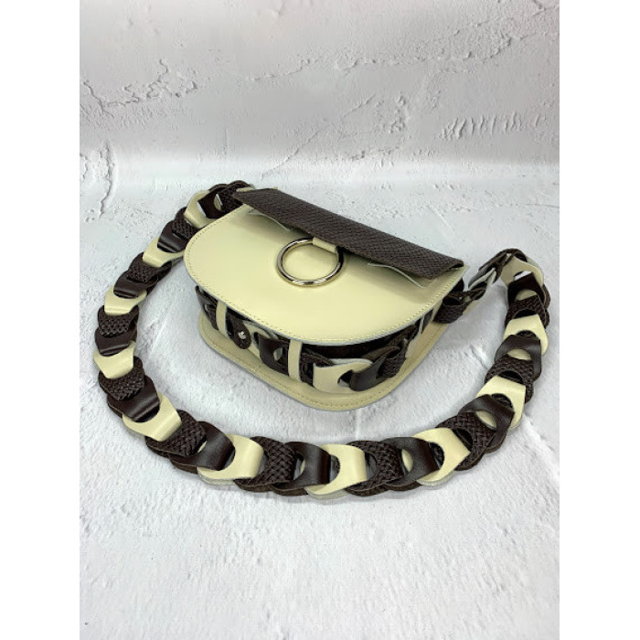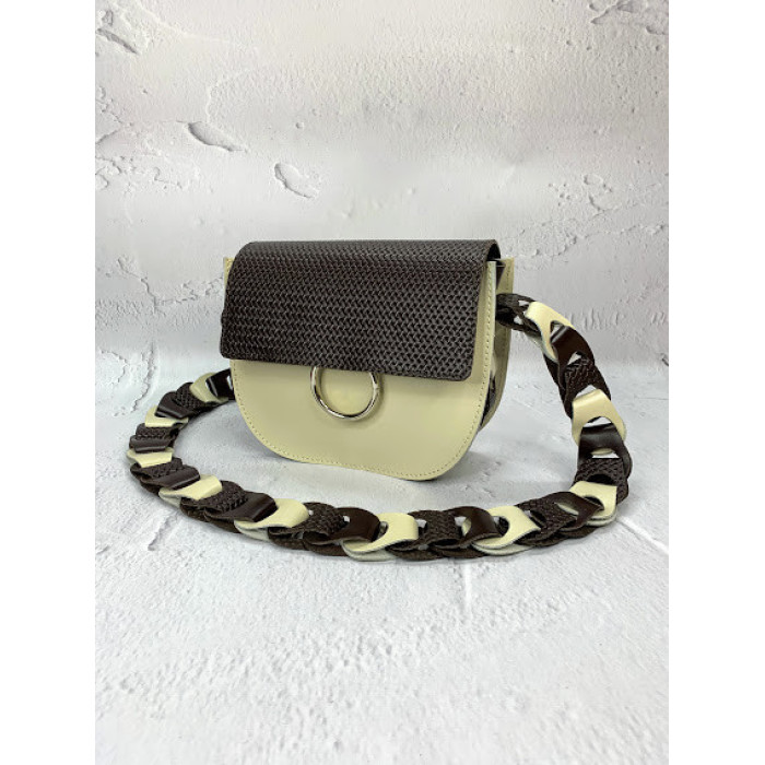Сумка жіноча "Рута" натуральна шкіра, слонова кістка/шоколадна