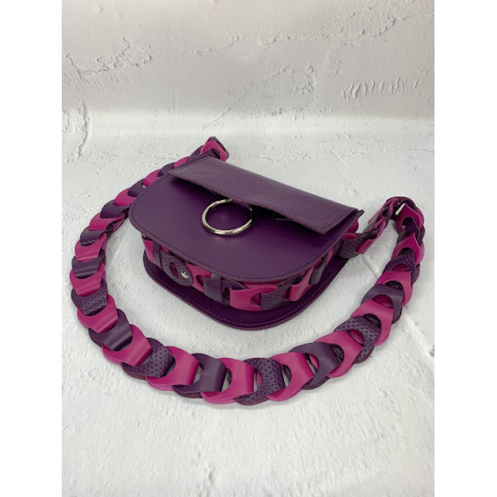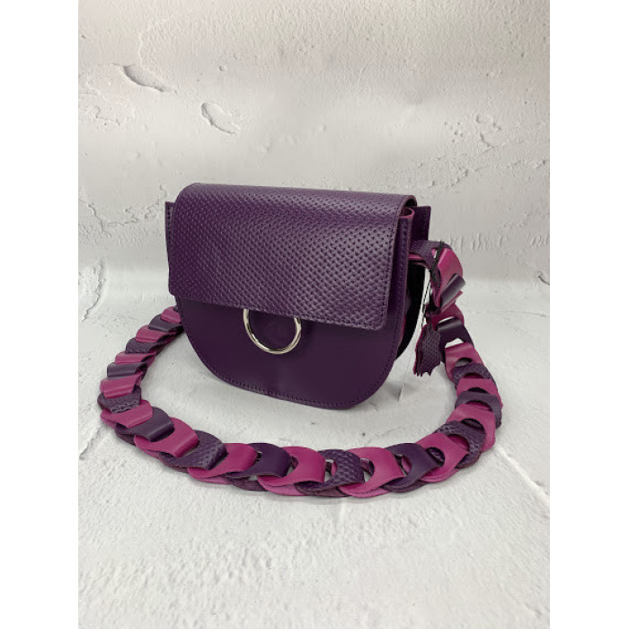 Оригінальна сумочка "Рута" не залишить байдужою її власниці! Плетений ремінь проходить через всю сумочку і надає їй особливу родзинку. Повністю виготовлена з натуральної шкіри, закривається на блискавку і на два магніту. Є кишеня на блискавці на задній стінці сумки і відкритий кишеня всередині сумочки. Плечовий ремінь 130см, можливо регулювати довжину з допомогою гвинта, який знаходиться внизу сумки.