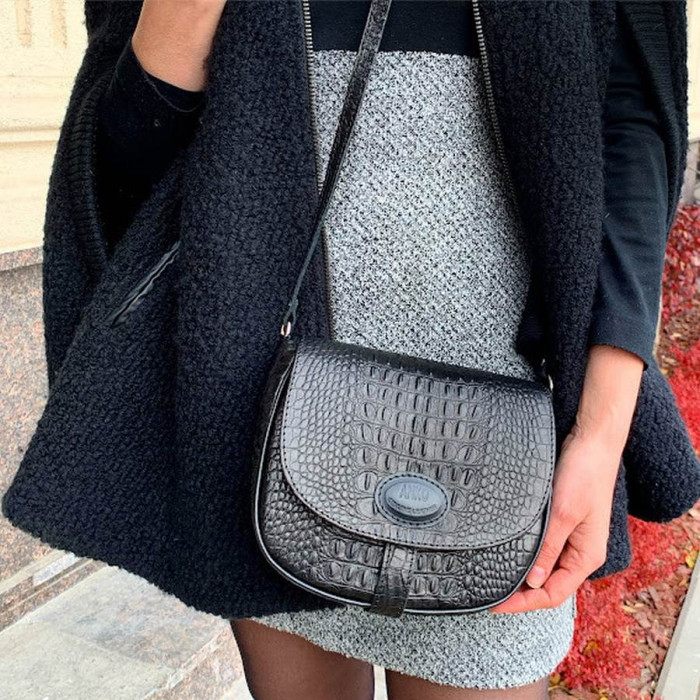 Найпопулярніша модель маленьких сумочок. Сумка на підкладці, закривається на магніт, всередині є кишеня на блискавці. Плечовий ремінь сумки регулюється.