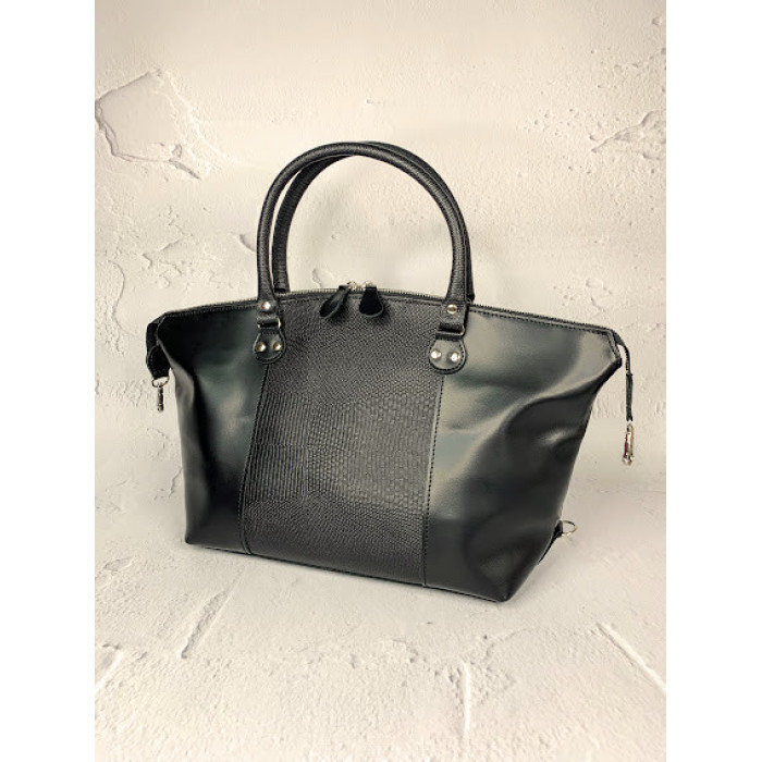 Дуже містка сумка-трансформер "ВЕРОНА". Завдяки бічним карабінам трансформується в іншу модель сумки. Сумка на підкладці, всередині є містка кишеня на блискавці та відкрита кишеня. Є дві короткі ручки для носіння в руці й один плечовий ремінь, який кріпиться за допомогою карабінів.
