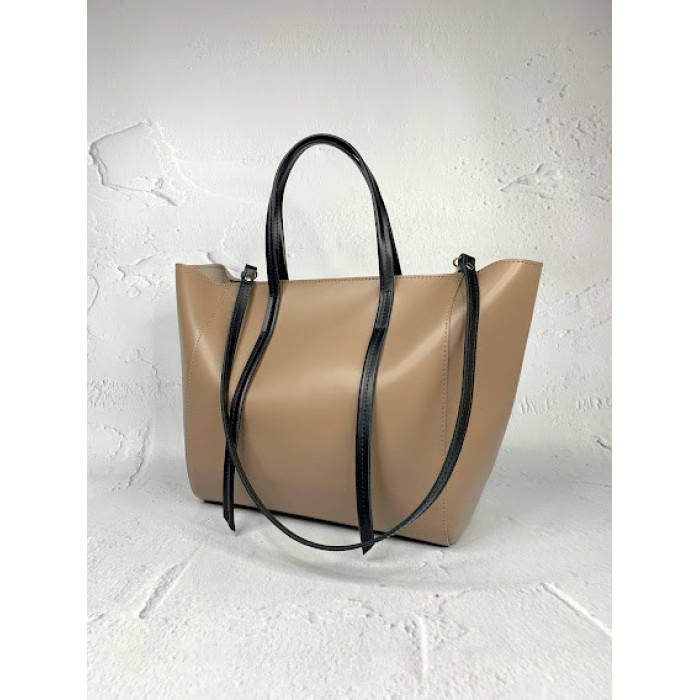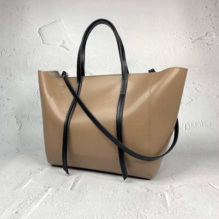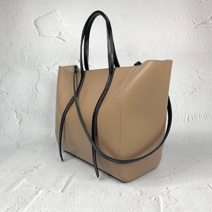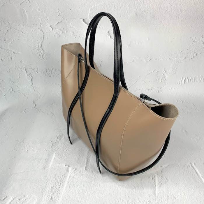 Сумочка "Лад’я" виготовлена з натуральної шкіри. Закривається на блискавку, всередині є замшевий кофр, який кріпиться до корпусу сумки. Має дві короткі ручки і плечовий ремінь 80см.