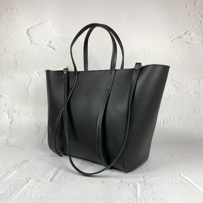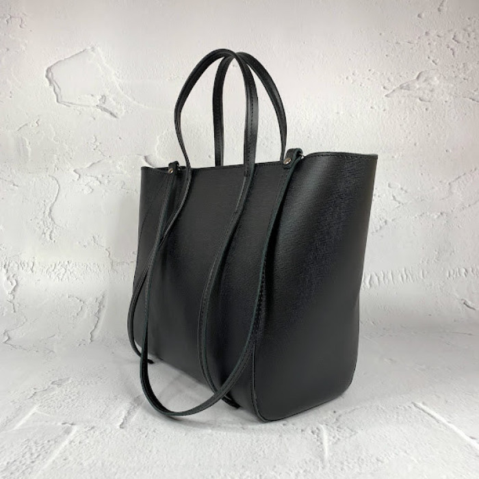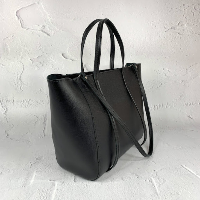 Сумочка "Лад’я" виготовлена з натуральної шкіри. Закривається на блискавку, всередині є замшевий кофр, який кріпиться до корпусу сумки. Має дві короткі ручки і плечовий ремінь 80см.