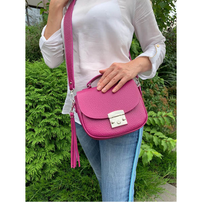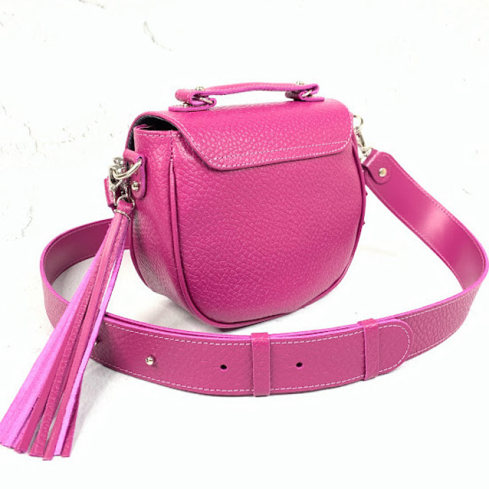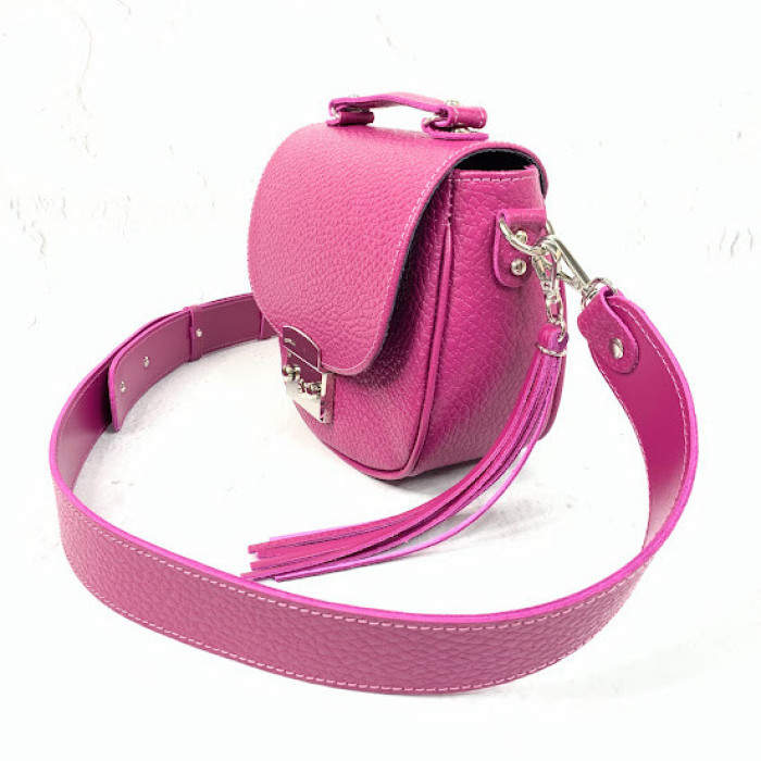 Найпопулярніша наша модель маленьких сумочок. Сумка на підкладці, закривається на замочок-засувку з кнопками, всередині є кишеня на блискавці. Плечовий ремінь сумки регулюються. У формі прикраси на карабіні кріпиться шкіряний пензлик.
