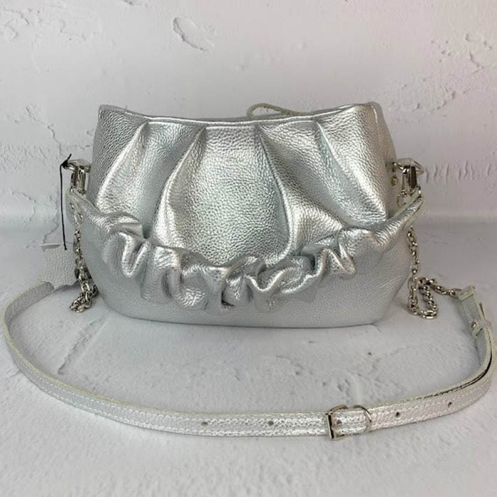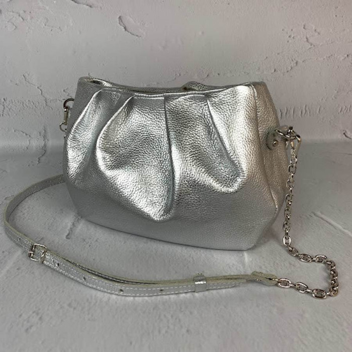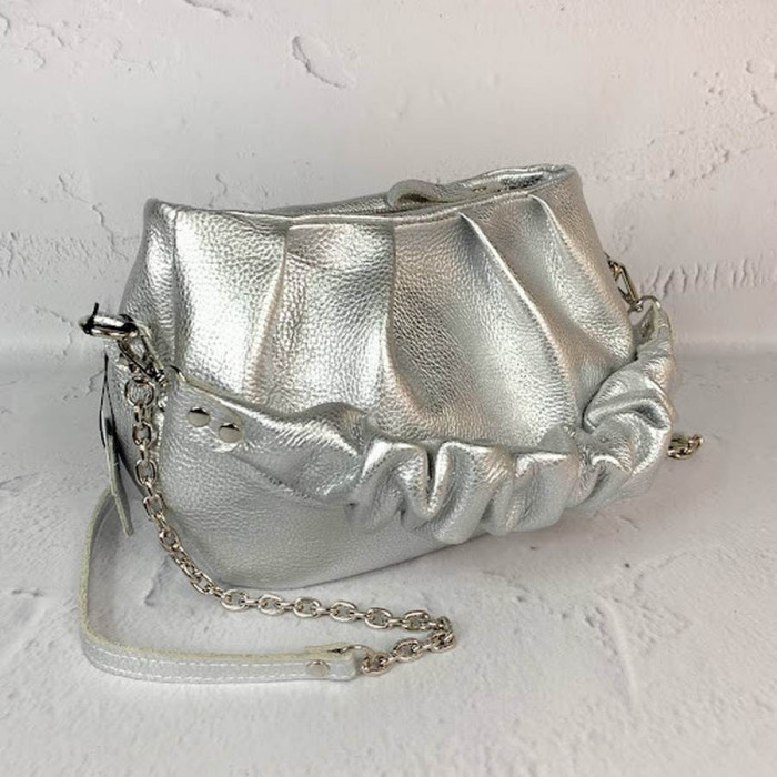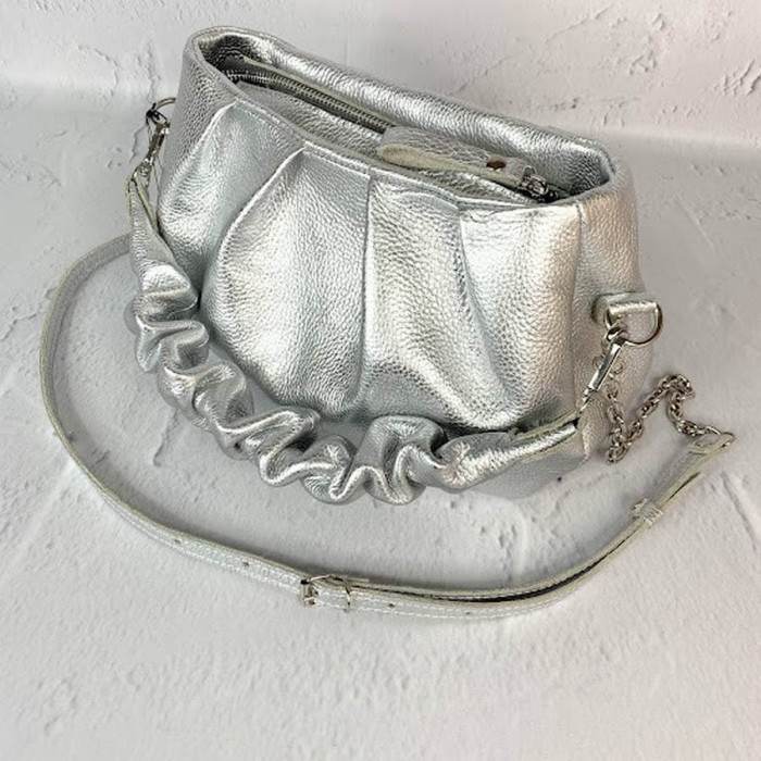 Сумочка "Румба" виготовлена з натуральної шкіри. Усередині на підкладці, має кишеню на блискавці. Плечовий ремінь подвійний на карабінах, з регулюванням довжини. Коротка жата ручка завдовжки 40 см на карабінах.