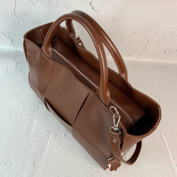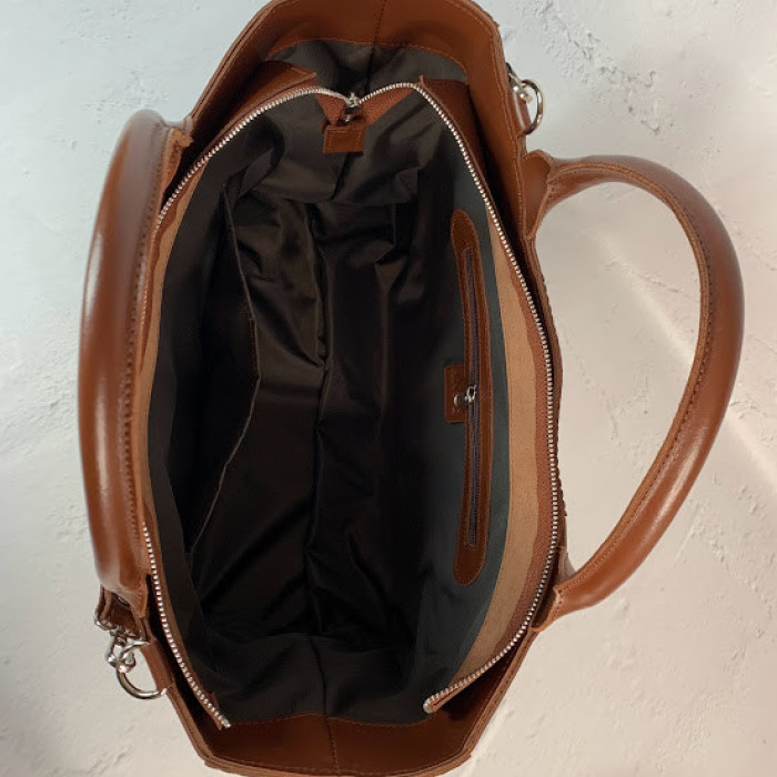 Дуже містка і практична сумка, стане невід'ємною частиною гардеробу ділової та модної дівчини! До неї ідеально помістяться документи формату А-4. Цю сумку можна носити як на плечі, так і в руці. Сумка на підкладці, всередині є кишеня на блискавці та відкрита кишеня. Плечовий ремінь на карабінах.