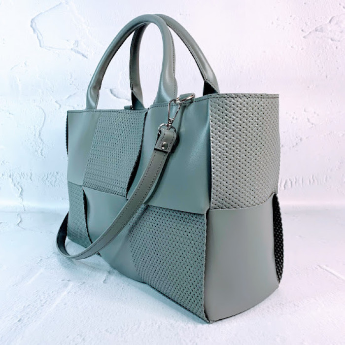 Дуже містка і практична сумка, стане невід'ємною частиною гардеробу ділової та модної дівчини! До неї ідеально помістяться документи формату А-4. Цю сумку можна носити як на плечі, так і в руці. Сумка на підкладці, всередині є кишеня на блискавці та відкрита кишеня. Плечовий ремінь на карабінах.