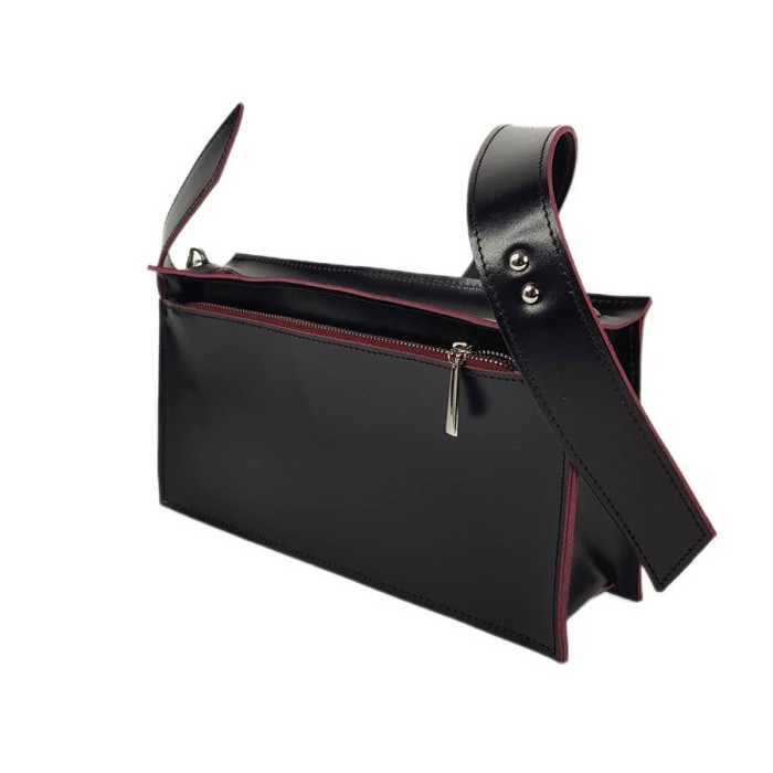 Сумочка "Паола" виготовлена з натуральної шкіри. Всередині без підкладу, всередині є відкрита шкіряна кішеня, зовні велика кішеня на блискавці. Плечовий ремінь кріпиться до сумки за допомогою карабінів та має довжину приблизно 70 см від кріплень. Розмір: 30*17*7