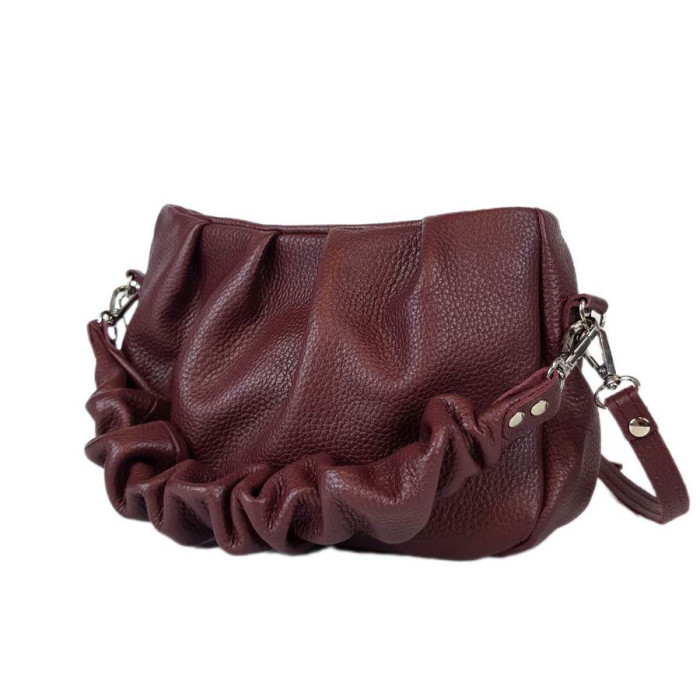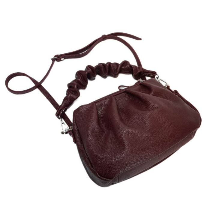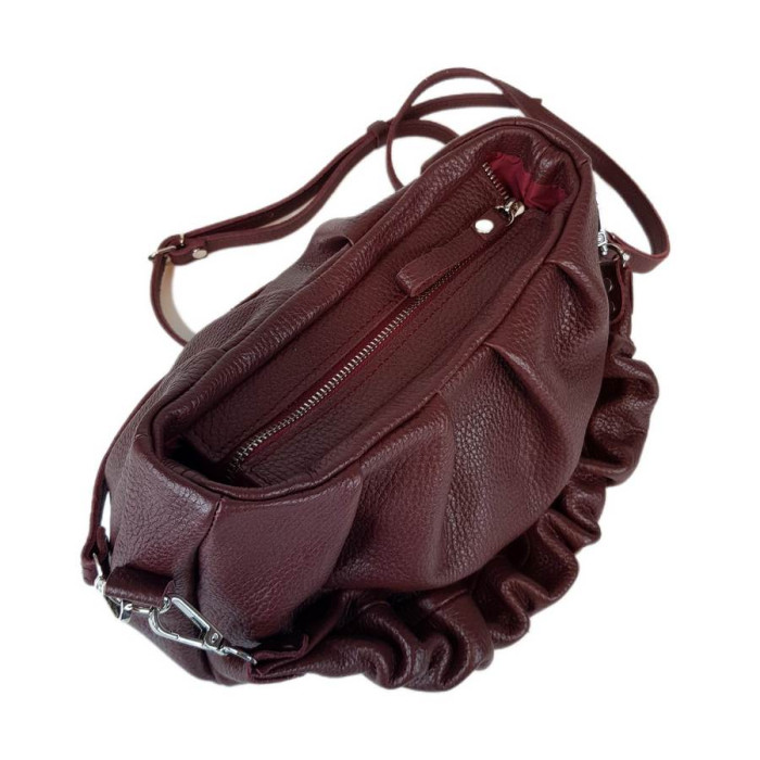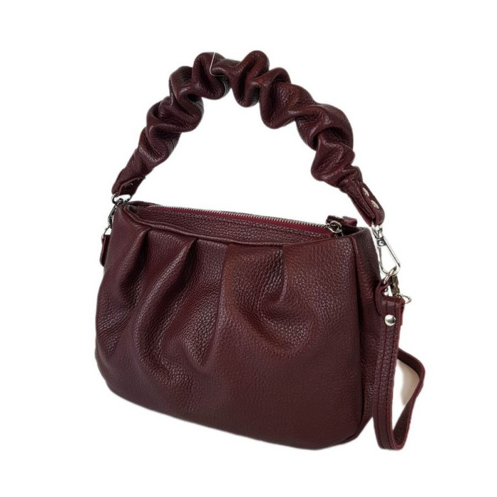 Сумочка "Румба" виконана з натуральної шкіри. Всередині на підкладці, має кишеню на блискавці і відкриту кишеню. Плечовий подвійний ремінь на карабінах, з регулюванням довжини. Коротка ручка довжиною 40см на карабінах.
