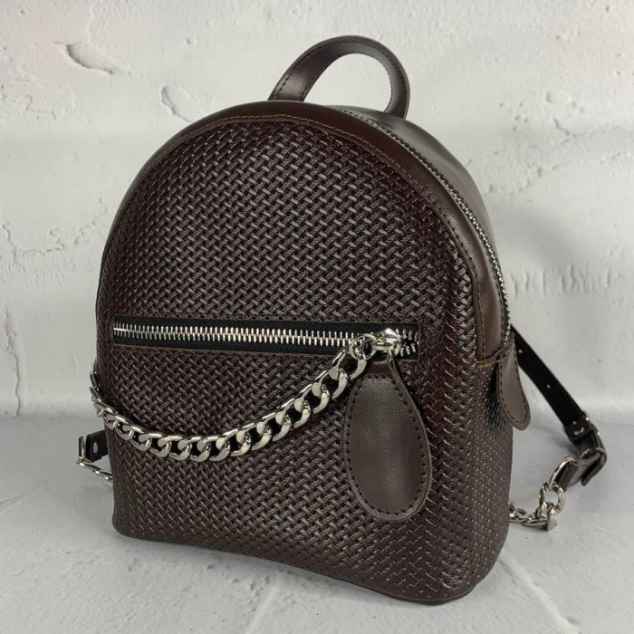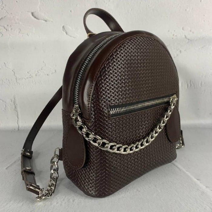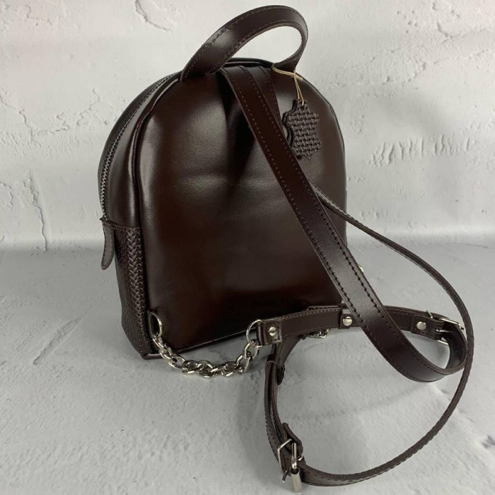 Неймовірно зручний рюкзак з якісної натуральної шкіри. Відмінно тримає форму і дуже місткий. Ланцюжок надає рюкзачку оригінальність. Має одне велике відділення, всередині на підкладці.