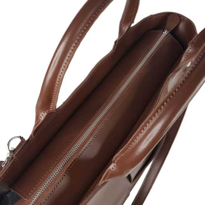 Дуже містка і практична сумка, стане невід'ємною частиною гардеробу ділової та модної дівчини! До неї ідеально помістяться документи формату А-4. Цю сумку можна носити як на плечі, так і в руці. Сумка на підкладці, всередині є кишеня на блискавці та відкрита кишеня. Плечовий ремінь на карабінах.