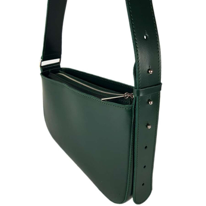 Елегантна каркасна сумочка середнього розміру через плече, яка помістить у собі усе необхідне. Дуже гарно тримає форму. Всередині на підкладці, має дві кишені: відкриту та на блискавці. Є довгий ремінь, що регулюється 70-90см.