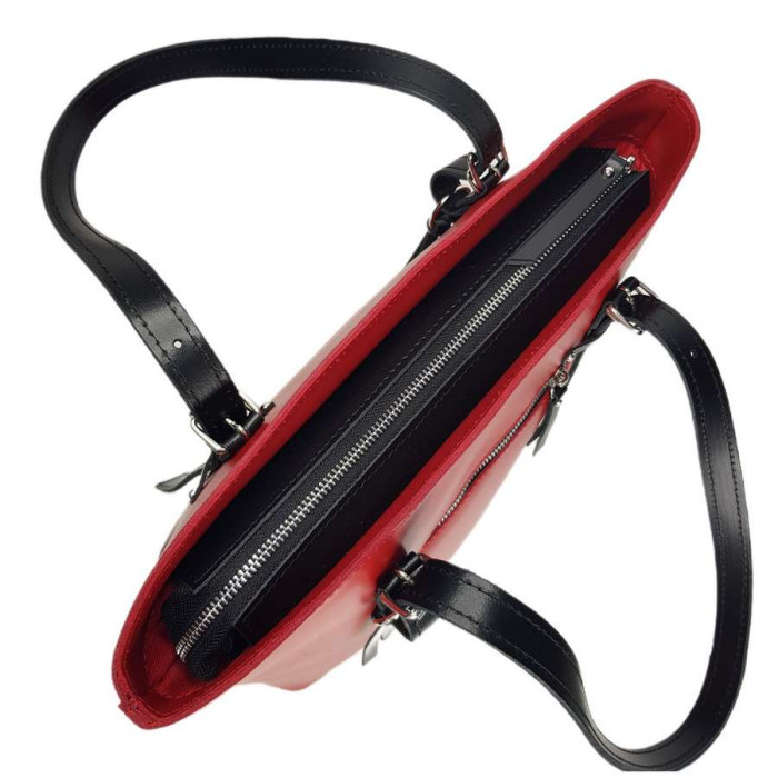 Ділова жіноча сумочка "Ліана" виготовлена з натуральної високоякісної шкіри. Сумка на підкладці, всередині є кишеня на блискавці і дві відкриті кишені, а також є кишеня на блискавці на внутрішній стороні сумочки. Є дві плечові ручки. Закривається сумка на блискавку. Розмір: 40*32*15