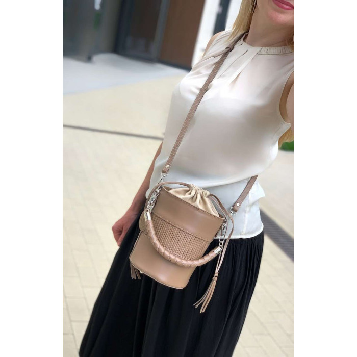 Дуже оригінальна і містка сумочка "Моніка" виготовлена з натуральної шкіри. Вона добре тримає форму, має наплічний ремінь з регулюванням, можливо носити сумку як на плечі, так і в руці. Всередині на підкладці, є всередені дві кишені, відкрита , а також кишеня на блискавці.