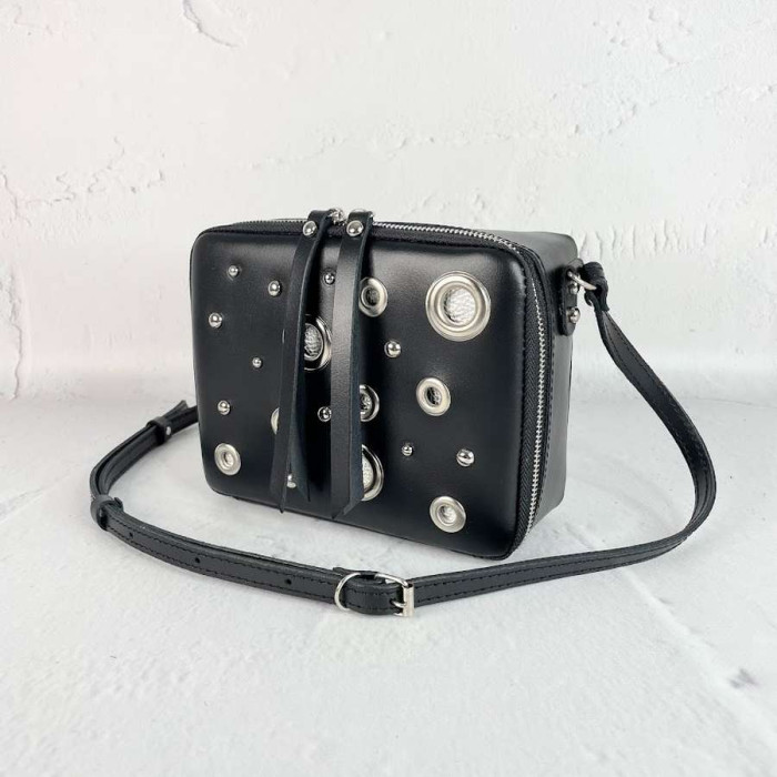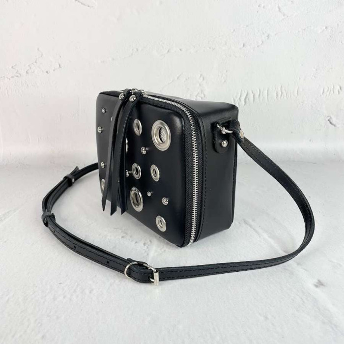 Дуже оригінальна сумочка з натуральної шкіри "КВАДРО".Вона відмінно тримає форму і помістить у себе все необхідне,що треба взяти з собою! Особливість цієї моделі в контрастній чорній блискавки, але, якщо Ви хочете, ми можемо зробити її під колір сумки. Всередині на підкладці. Має невелику внутрішню кишеньку. Ремінець-це щільний срібний ланцюг з плечовою вставкою зі шкіри.