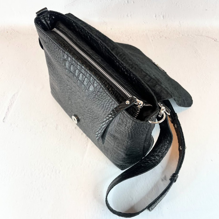 Сумочка "Мішель" зроблена з натуральної шкіри. Всередині є підкладка, має кишеню на блискавці і відкриту кишеню. Плечовий ремінь подвійний на карабінах, з регулюванням довжини.