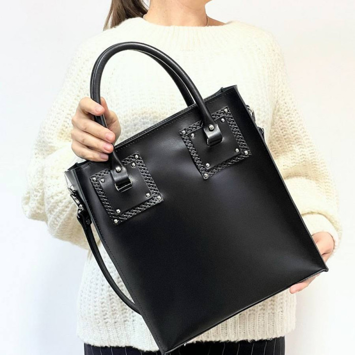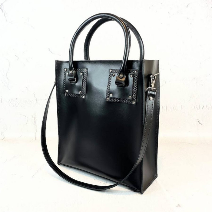Дуже оригінальна сумочка, яка стане ідеальним доповненням і для ділового костюма, а також і для гарних речей. Відмітна особливість цієї моделі в оригінальній комбінації кольорів, яку Ви зможете замовити за своїм бажанням. Сумка без підкладки (можна зробити з підкладкою),всередині шкіряна кишеня на блискавці. Має дві короткі ручки і плечовий ремінь, який можна замовити в потрібній Вам довжині.